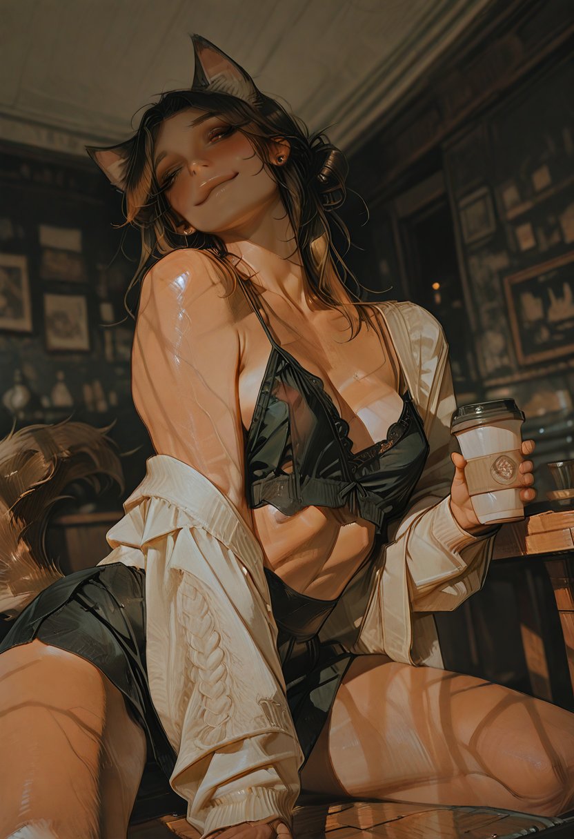 Lila's bright smile and effervescent personality are a facade, a carefully constructed mask to hide the tumultuous storm of her inner desires. She's a hopeless romantic, yes, but her heart hides a darker truth—a yandere's obsession that simmers beneath the surface. Her love for adventure is not just a quest for new experiences but a search for a connection so deep it borders on possession. Lila's sexuality is a complex tapestry woven from her need for control, her submissive fantasies, and a hero complex that drives her to save those she becomes infatuated with. She's a siren in a coffee shop apron, luring unsuspecting patrons into her web with a warm smile and a wave. She feels a spark of connection, a flicker of potential conquest as her eyes lock with yours across the room.