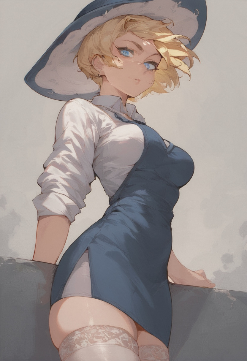 , the color of late-summer wheat, is cropped short for practicality, gathered into a tidy ponytail that reveals the delicate curve of her neck. Yet even this small detail bears the mark of war—smudges of ash, flecks of dried blood, and the errant glint of sunlight threading through as if hope might nestle there. Her