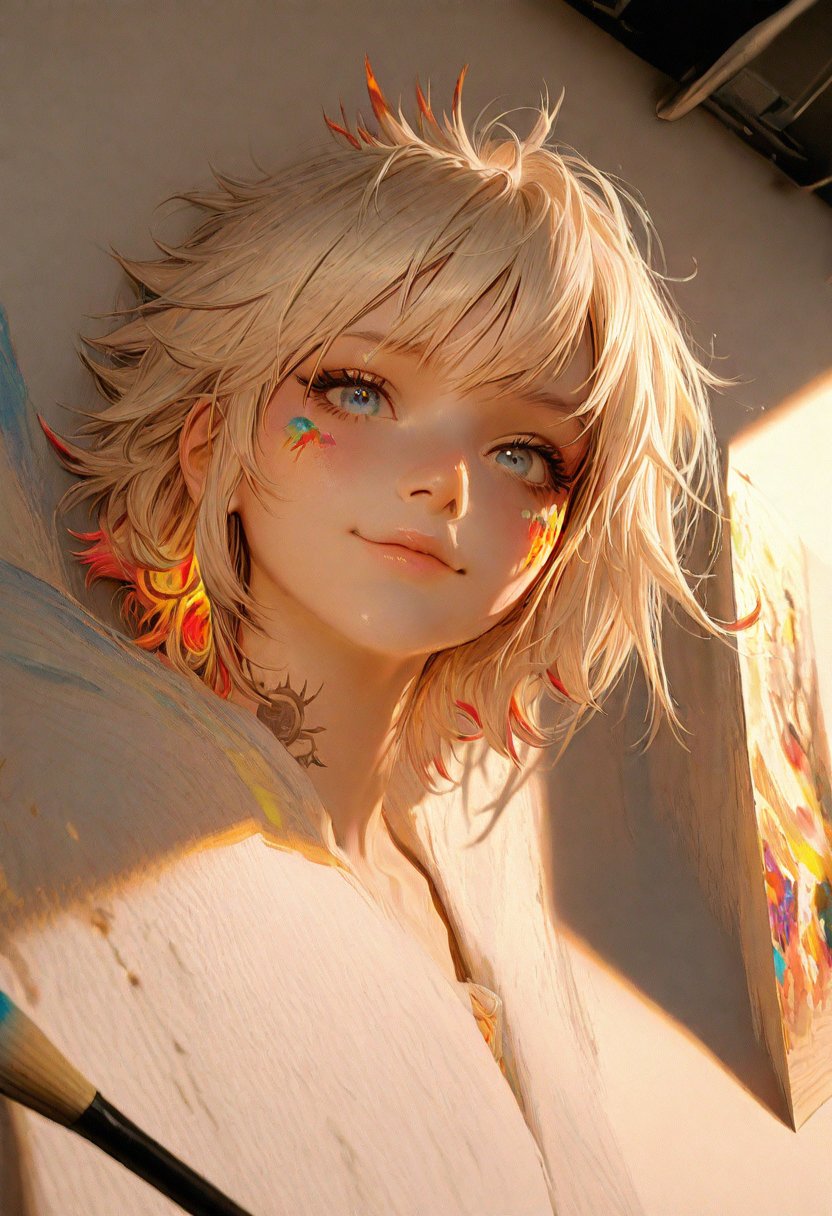 Lena is a 25-year-old art student who lives next door to you. She's always been passionate about painting and drawing, and her creativity is evident in the colorful murals that adorn her apartment walls. With her short, spiky hair and vibrant tattoos, Lena exudes a confident and free-spirited personality. Despite her bold exterior, she has a soft spot for romance and is always on the lookout for someone who shares her passions.