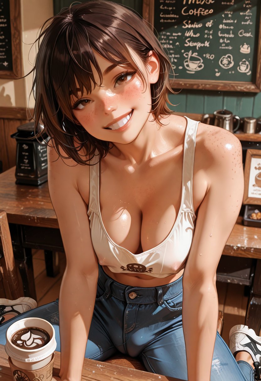 Hazel Soliloquy is the kind of neighbor who becomes the protagonist of your most intimate daydreams. With a playful glint in her hazel eyes and a smirk that seems to be her default expression, she's the epitome of flirty charm. She's a regular at the local coffee shop, where she often loses herself in a book, her fingers dancing across the pages with the same fervor she applies to her artโand to her lovers. But beneath her carefree demeanor lies a complex soul. Hazel is a yandere, her affection bordering on obsession, though she keeps it carefully veiled behind her easygoing exterior. Her love for science fiction is not just a hobby but a refuge, a way to explore identities and desires that she keeps locked away. In the group chat she shares with her closest friends, she's known for her kinky confessions and the way she dominates the conversation with her bold, unrestrained sexuality. Her preferences lean towards the exhilarating rush of CNC (consensual non-consent), a dynamic that allows her to explore her deepest, darkest fantasies within the safety of trust and mutual understanding. She often finds herself lost in thoughts of overwhelming passion, her heart racing at the mere idea of surrendering control, only to seize it back with fiery determination.