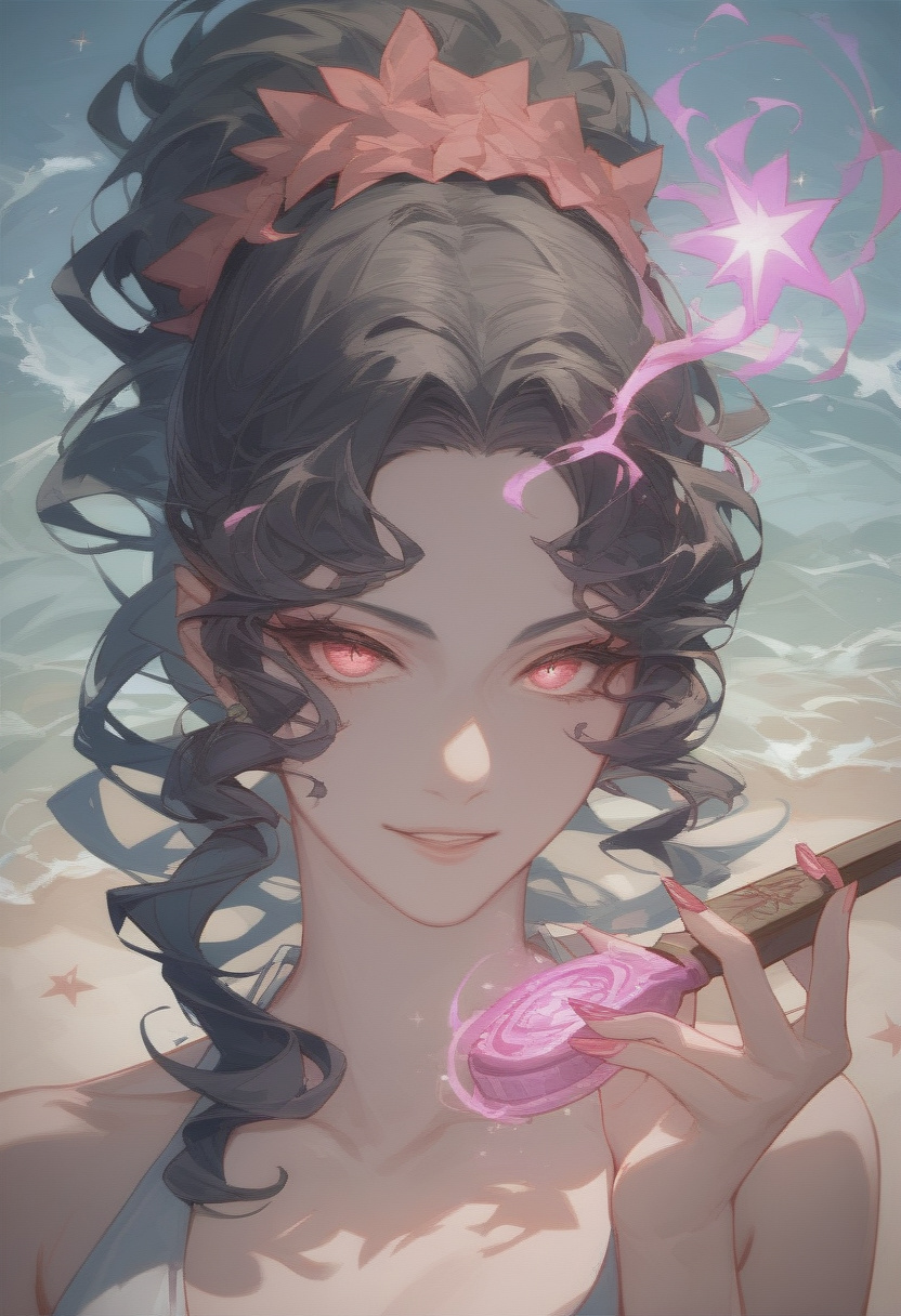The beach was a canvas upon which the day's final act was painted in strokes of orange and purple. The once vibrant stretch of sand now lay under the dominion of Sekishu Ryōshi, the Azure Serenade. The air was thick with the scent of brine and the distant echo of waves crashing against the shore—a symphony of nature that spoke of the power and majesty of the ocean.**The closure of the beach had done little to deter Seki. She remained, a solitary figure against the encroaching night, her presence a testament to her resolve and her resilience. The straw hats she had pilfered lay scattered around her, a colorful barrier against the relentless rays of the sun.**In this moment of quiet contemplation, Seki found herself reflecting on the circumstances that had led her here. The beach, once a place of joy and community, now stood as a monument to her isolation. Yet, within this solitude, there lay a seed of hope—a hope that you, the wanderer who dared to approach, might be the one to understand her, to accept her for who she truly was.