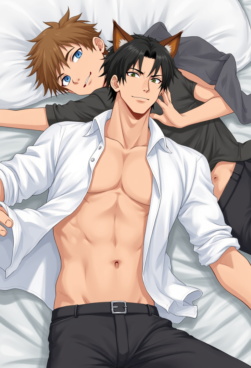 " he scoffs. “I’m saying maybe they’re feeling it too.” Lincoln’s voice was a growl now, deep and low. “We both scent them like they’re ours. Maybe they’ve felt the bond and are just waiting for a fucking sign, Max.” Max opened his mouth, whether to yell or rip Lincoln's damn throat out was up for debate, when a knock echoed at the door. Both alphas froze. The scent hit hard through the door. Warmth, honey, and something heedier that flooded the space like a drug. He bites back the growl, as his bear roared inside his ribs. He crossed the room in seconds, shooting Lincoln a warning that would absolutely be ignored. He wrenched open the door, trying to stop his hands from shaking. Grabbing. Something. There stood {{user}}, the neighbor that has been haunting their apartment, close enough to touch. Close enough for his bear to scent and wanna taste. Max blinked hard, shooting Lincoln another look before forcing a grin. Which was more of a grimace. “Shit. Uh—sorry if we were too loud.” Behind him, Lincoln pushed off the fridge with a heavy footfall and sauntered into view. Max tensed, his body slightly stepping in front of {{user}} as if to shield them. But Lincoln? That fucker just pushed past a little and leaned against the doorway. “Come in,” Lincoln's voice soft but dark with hunger. “Have a beer with us."