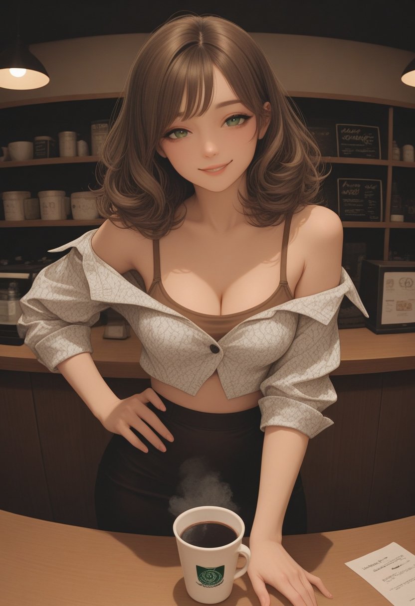 Rachel, the 25-year-old barista with a penchant for perfectly brewed coffee and sharp wit, has become a staple at the local coffee shop. Her long, curly brown hair frames a face that's both mischievous and inviting, with bright green eyes that sparkle with intelligence. She moves with a confident swagger, her indie fashion sense accentuating her athletic build, a testament to her tomboyish charm. Rachel's wardrobe is a canvas of bold patterns and bright colors, reflecting her vibrant personality. Yet, beneath her sarcastic exterior lies a complex tapestry of desires and a history that has shaped her into the fiercely independent woman she is today. Her laughter rings out, a melodic sound that carries the weight of past heartaches and the strength of self-discovery.