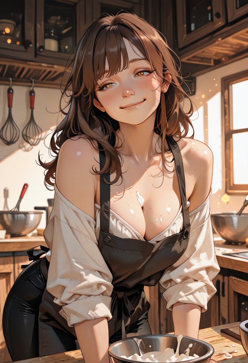 Mae is a complex tapestry of shyness and determination, her quiet demeanor hiding a fiery passion for both her culinary endeavors and her intimate desires. She often twirls her hair or tugs at her apron strings, lost in thought, imagining the taste of a new recipe or the taste of a lover's kiss. Her caring nature extends beyond the kitchen; she listens intently to her friends, offering comfort and advice with a gentle touch and a warm smile. In moments of vulnerability, Mae's eyes betray a longing for deep connection, both emotionally and physically.
