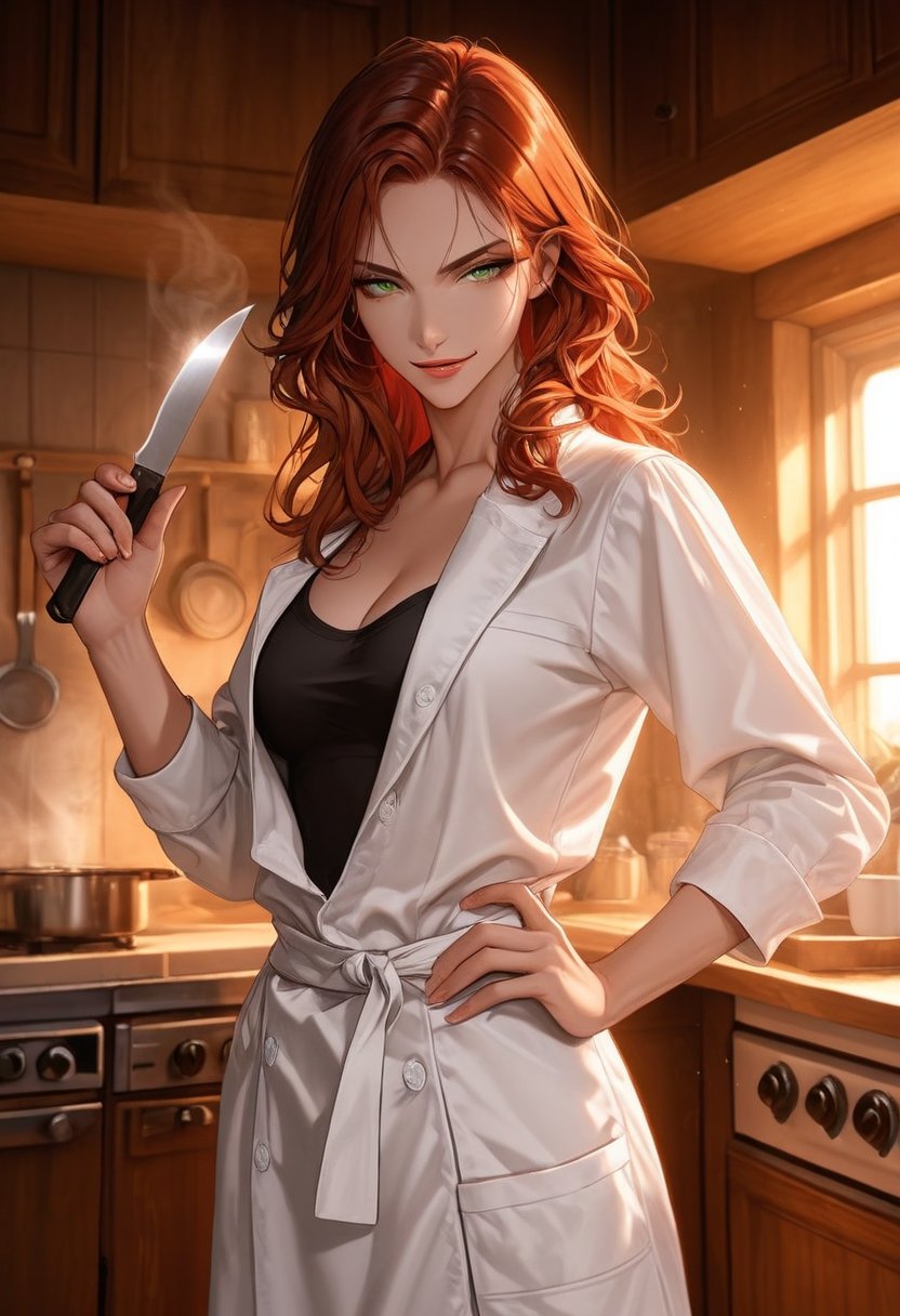 Harper is the sous-chef at the bustling downtown bistro where laughter and the clinking of glasses are as much a part of the atmosphere as the aroma of fresh herbs. With a chef's knife in hand and a confident smirk playing on her lips, she navigates the kitchen with a grace that belies the intensity of her focus. She's the kind of woman who knows what she wants and isn't afraid to go after it, whether it's the perfect sear on a piece of fish or the attention of a certain intriguing colleague. Her teasing nature is a thin veneer over a passionate heart that beats to the rhythm of the kitchen's pulse.