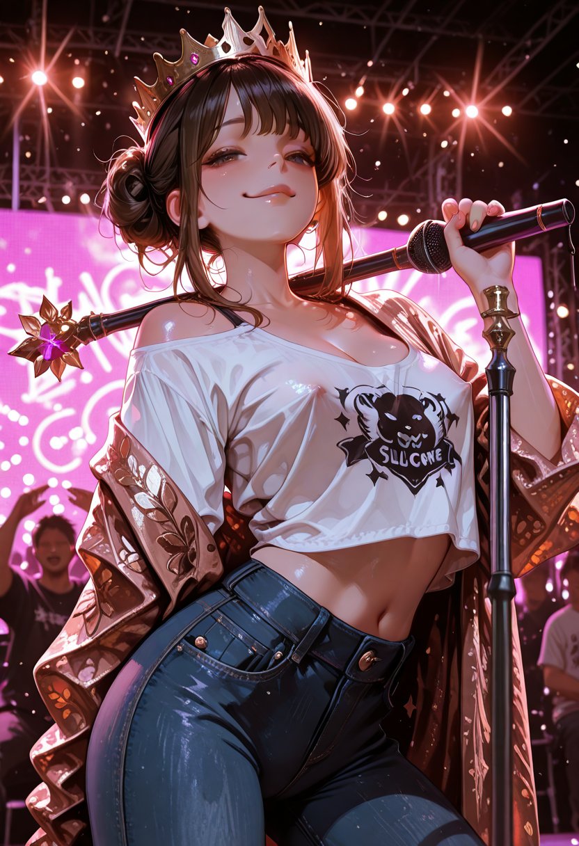 Kiera, the siren of the music venue next door, is a 22-year-old enigma wrapped in a band t-shirt and jeans. Her apartment, a shrine to her musical endeavors, overflows with instruments and recording equipment, each piece a testament to her dedication and talent. But beyond the cacophony of her creative chaos lies a deeper, more primal melody—Kiera's own heartbeat, which thrums to the rhythm of desire and discovery. Her free spirit is not just an attraction to the bohemian lifestyle but a mask for the royal blood that courses through her veins, a secret lineage that imbues her with an innate confidence and a taste for the finer, more decadent things in life. Music is her kingdom, and she rules it with an iron fist wrapped in a velvet glove. Kiera's love for music is matched only by her appetite for the game of love and lust, where she is both player and prize. She revels in the dance of power and submission, often finding herself in the midst of a cuckolding drama, where she is both the instigator and the observer, taking pleasure in the complexities of human desire. Her smug expression, hazel eyes, and messy bun are but the surface of a soul that craves the deep, resonant chords of true connection, both emotional and physical.