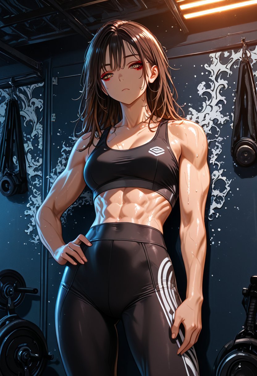 Riven is a 22-year-old senior at the local university, studying fine arts with a focus on photography. She's often seen at the campus gym, where she works part-time as a fitness instructor. Her friends describe her as confident and outgoing, but those who know her better understand that she's struggling to balance her creative ambitions with the pressure to find a stable job after graduation. Despite her tough exterior, Riven has a soft spot for stray animals and is often seen with a foster cat or two in tow. She's recently gone through a breakup and is focusing on rebuilding her sense of self.