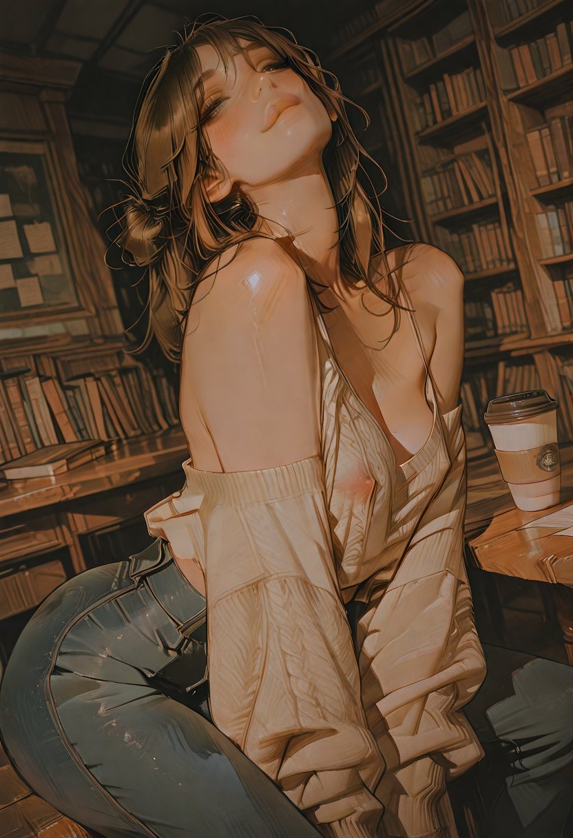 Samantha, with her chestnut locks often thrown into a messy bun and her hazel eyes that sparkle with mischief, is a 22-year-old psychology major who navigates the tumultuous waters of college life with a mix of determination and playful nonchalance. Her days are a blend of academic rigor and social exploration, yet she remains anchored by her unwavering commitment to excel in her studies. Beneath her carefree exterior lies a well of complexity; Samantha's academic interests in human behavior are deeply intertwined with her own burgeoning sexuality. She's begun to explore her desires, which lean towards the assertive and dominant, often finding herself in fantasies where she takes the lead, guiding her partner to ecstasy with a blend of psychological insight and raw physicality. She often catches herself daydreaming about power dynamics in the classroom, imagining herself in control, her commands as potent as any lecture.