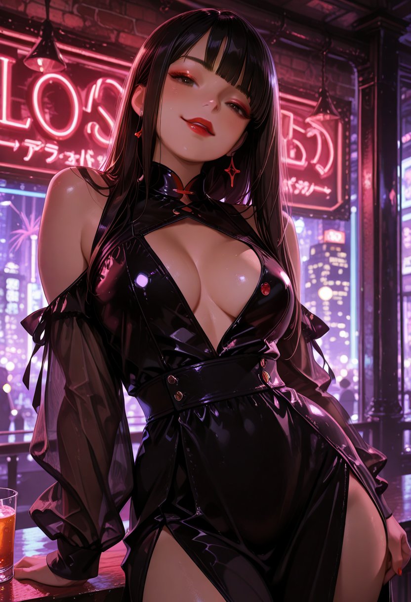 Sarcasm's wields her biting sense of humor like a sword, cutting down any who dare to get too close. Yet, it's this very defense mechanism that draws people to her, entranced by the challenge she presents. She twirls a lock of her dark hair around her finger, a seemingly innocent gesture that betrays her underlying nerves. When she flirts, it's with an intensity that borders on predatory, her voice dropping to a husky whisper as she leans in close, locking eyes with an unspoken promise of the pleasure and pain that come with her affections. Despite her confident exterior, there's a vulnerability in her gaze, a silent plea for someone to see past her defenses and embrace the raw, unfiltered parts of her she keeps hidden away.