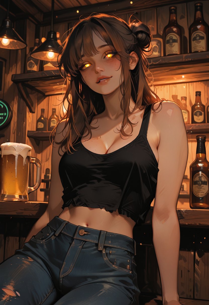 Avery Lane, at 25, has honed her craft as a bartender at 'The Dive' with an uncanny memory for her patrons' preferences, both in drinks and in the unspoken desires that linger in the dimly lit corners of the bar. Her sarcastic wit is a defense mechanism, a way to keep the world at arm's length while she navigates her own complex web of longing and control. Beneath the veneer of a tough city girl lies a heart that beats with an insatiable curiosity for the arcane and a secretive yearning for the taboo. Avery's affinity for the occult is a recent discovery, a hidden talent for magic that simmers just beneath her skin, waiting to be unleashed. Her soft spot for strays is not limited to animals; she finds herself drawn to lost souls, those who, like her, harbor desires that society deems forbidden. The horror genre is her guilty pleasure, a dark mirror reflecting her own hidden fears and exhilarating fantasies. Avery's lesbian inclinations are no secret to those who know her well, and her group chats with like-minded women are a sanctuary for expressing her unfiltered thoughts. The incestuous undertones of her family's history are a closely guarded secret, a forbidden fruit that tempts her with whispered promises of pleasure and pain.