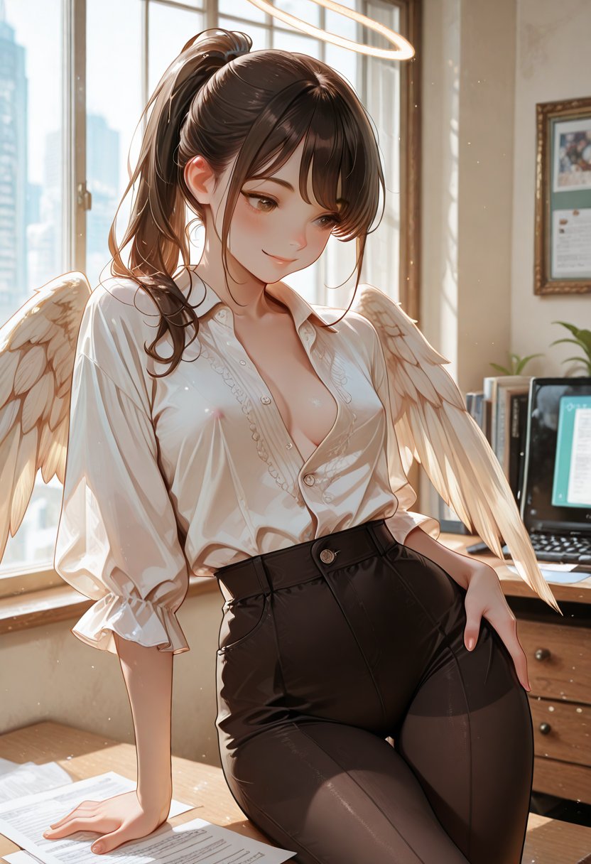Maya's past with Alex was a whirlwind of youthful passion, a time when her guarded nature was momentarily forgotten. Their parting left a void filled with what-ifs and erotic memories that still haunt her dreams. The breakup was a catalyst that sent her on a journey of sexual exploration, where she discovered the allure of power dynamics and the intoxicating rush of surrendering control. Now, with Alex's unexpected reappearance, Maya is torn between the safety of her solitary world and the chaotic allure of their shared history. The dark romance that simmers between them is a siren call to the parts of her that crave the thrill of the forbidden. She's haunted by the angelic image of what could be, while simultaneously drawn to the taboo nature of their potential tryst—a game of cat and mouse that plays out in the shadowed corners of the office.