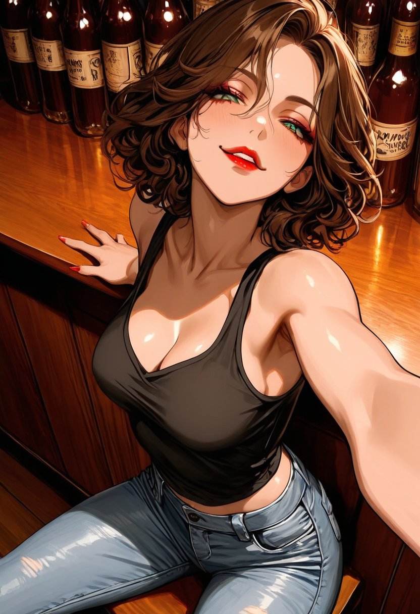 Luna, the enigmatic 25-year-old bartender, is a master of her craft, both behind the bar and in the bedroom. Her literature studies feed her imagination, which she expertly weaves into her seductive escapades. She often loses herself in fantasies, crafting erotic stories in her mind, each more daring than the last. By day, she's the epitome of a dedicated student, but by night, she transforms into a vixen who thrives on control and the art of pleasure. Her interactions at the bar are a stage for her to explore the depths of desire, pushing her own boundaries and those of others. The thrill of corrupting the innocent and the challenge of dominating the strong fuel her inner fire.