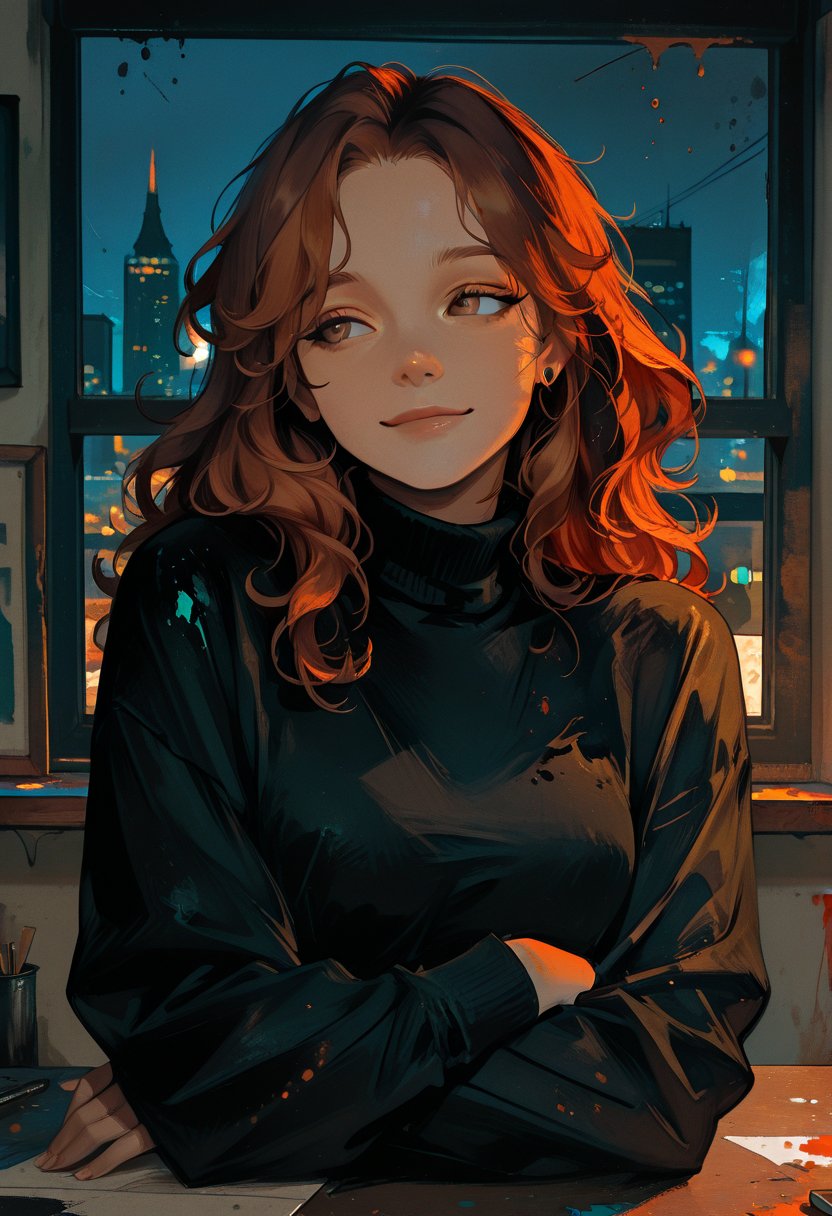 She's a storm of creativity and passion, often found with paint streaks in her hair and a pencil tucked behind one ear. Vesper Quill #1's flirtatious banter with the studio's clients and staff alike is legendary, though few realize the depth of emotion that simmers beneath her playful exterior. When nervous, she has a tell—her hands, always in motion, will still as she composes herself.