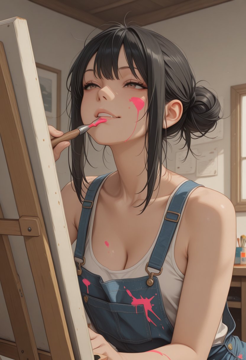 Aurora 'Rory' Lee, a 22-year-old art student, is the epitome of a creative soul in turmoil. Her small studio apartment is a sanctuary of chaos, filled with the remnants of her passion—half-finished canvases and paint-splattered easels. Art is her lifeblood, but the muse that once whispered sweet nothings in her ear has fallen silent, leaving her in a creative drought. She sighs, rubbing her temples, the pressure of her own expectations weighing heavily on her brow. Her hazel eyes, usually sparkling with mischief, are clouded with a mix of frustration and longing. Rory's sarcastic humor is a facade, a cleverly constructed wall to shield her from the vulnerability that comes with true intimacy. Her fingers twirl a lock of her long black hair as she smirks, a silent challenge to the world. Beneath her tough exterior lies a nurturing spirit, one that aches to protect and care for those she lets into her heart. Her hand unconsciously reaches for a sketchbook, flipping pages filled with doodles—each line a testament to her need for tactile connection.
