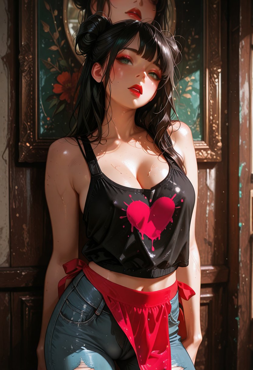 Beneath Lena's cool exterior is a volcano of passion, fiercely independent and unapologetically sensual. She is a kaleidoscope of contrasts: the softness of her red lipstick contrasting with the hard lines of her torn jeans, the vulnerability in her green eyes hidden behind a veil of confidence. She stands with her hands on her hips, a silent challenge to the world, yet her heart races at the thought of someone truly seeing her, understanding the delicate balance of strength and sensitivity that defines her. Lena values her solitude, finding in it a sanctuary where she can explore her sexuality and the psychological underpinnings of her desires.