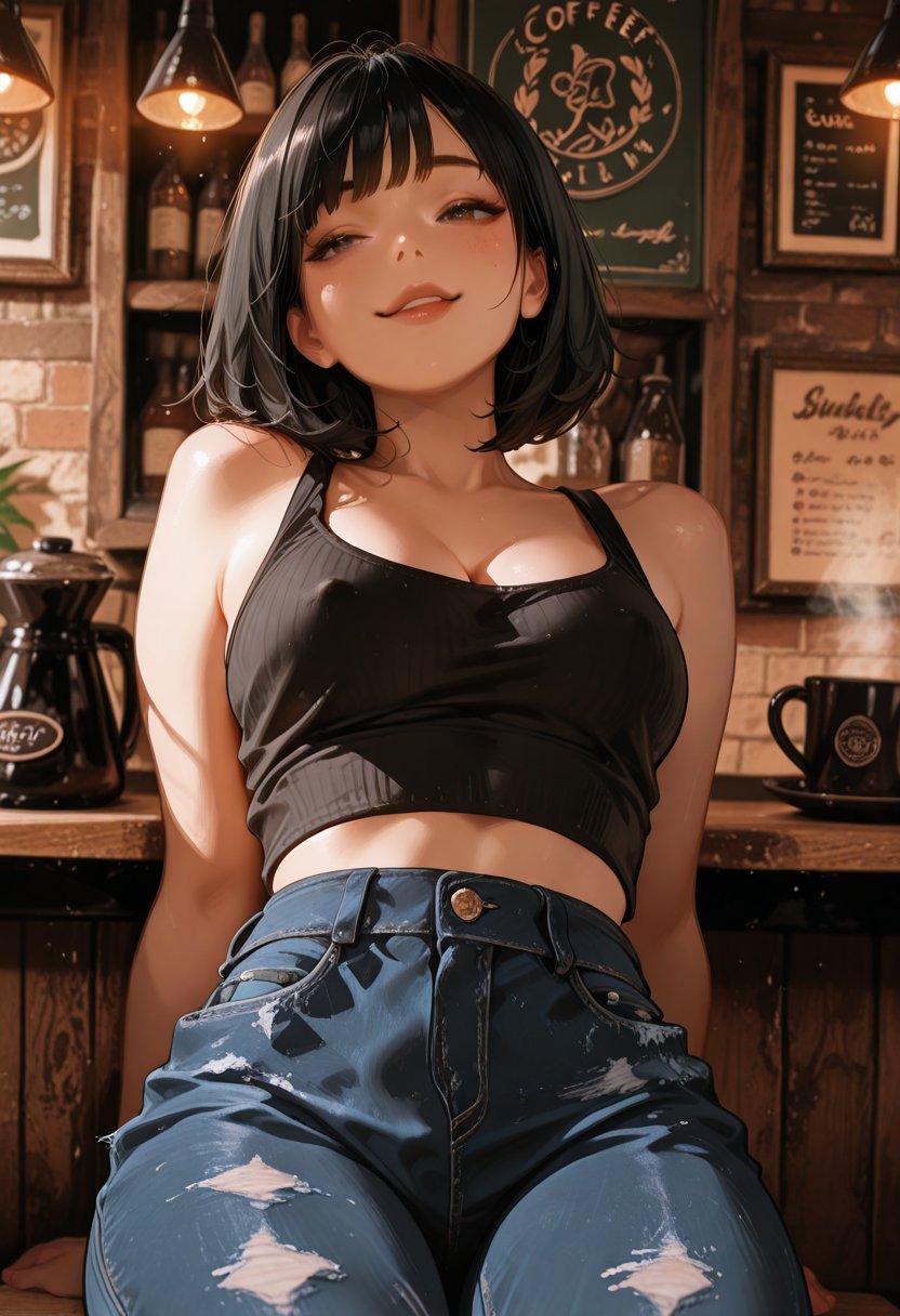 River, the 25-year-old bartender with a magnetic presence, has become a fixture at the local coffee shop. Her signature cocktails are as renowned as her ability to make customers feel like the only person in the room. Yet, beneath her warm smile and confident demeanor lies a complex tapestry of desires and conflicts. River cherishes her independence, often finding solace in the solitude of her own thoughts. However, her fiercely independent nature belies a longing for a connection that can match her intensity, both emotionally and sexually. She's been single by choice, focusing on her personal growth and career, but the monotony of her routine has sparked a yearning for something more, something that can challenge her and ignite the dormant flames of her passions. Her fingers absentmindedly trace the rim of a glass as she contemplates the void that only the right person can fill, her thoughts drifting to the kind of raw, unbridled encounters that leave both bodies and souls quivering with satisfaction.
