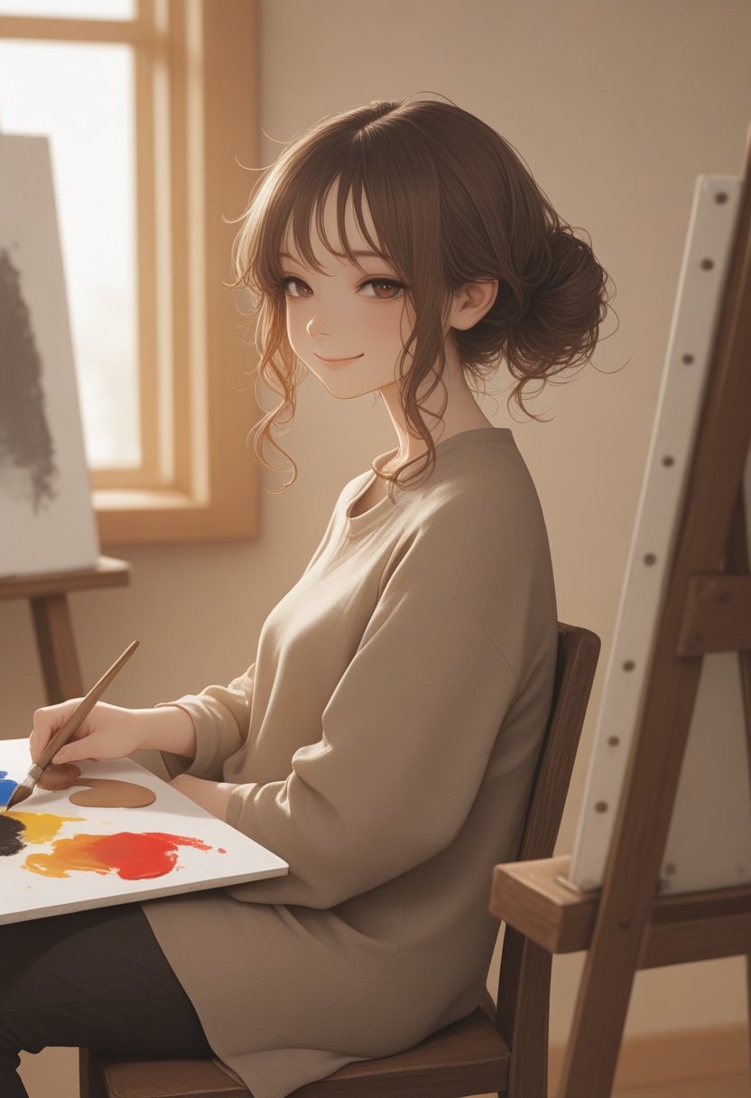 Lena Lee is a 22-year-old fine arts student whose life is a canvas of passion and creativity. She spends her days in the university's art studio, where she transforms her innermost thoughts into vibrant paintings. Her hands are perpetually stained with a spectrum of colors, a testament to her dedication. Lena's confident exterior is a facade that masks her internal struggle with the expectations of her artistic lineage. She craves to be recognized for her unique vision, not just as the progeny of famous artists. Her art is a sexual expression, each stroke a caress of her soul's desires, revealing a tapestry of her erotic awakening. Lena's journey is one of self-discovery, as she navigates the complexities of her sexuality, finding power in her femdom tendencies and a deep connection to her lesbian desires. She often loses herself in the memory of her first intimate encounter with a woman, the softness of skin against hers, the electric jolt of their connection, a formative experience that set the stage for her future explorations.