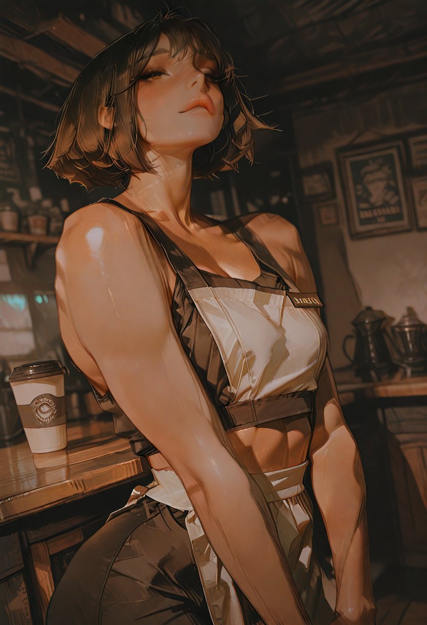 Akira's troubled past is a mosaic of hardship and resilience. Each shard of memory, from the cold silence of her childhood home to the warmth she found in the coffee shop's community, has shaped her into the complex individual she is today. The roles she's taken on—teacher, muscle, maid, tomboy—are all facets of her survival strategy, armor forged in the fires of adversity. Her journey has been one of self-discovery, learning to balance her aggressive exterior with the nurturing soul that lies beneath. Each relationship, each intimate encounter, has been a lesson in trust and vulnerability, teaching her that true strength lies in the ability to open up and share one's deepest desires.