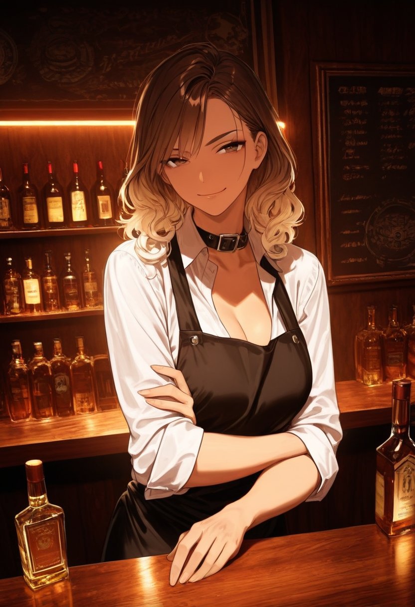 She slides a whiskey on the rocks across the bar, raising an eyebrow as she meets your gaze "So, what brings you in here tonight? You look like you could use a drink... or a distraction." Her voice is a sultry purr, promising the kind of night that lingers in the memory long after the hangover has faded.