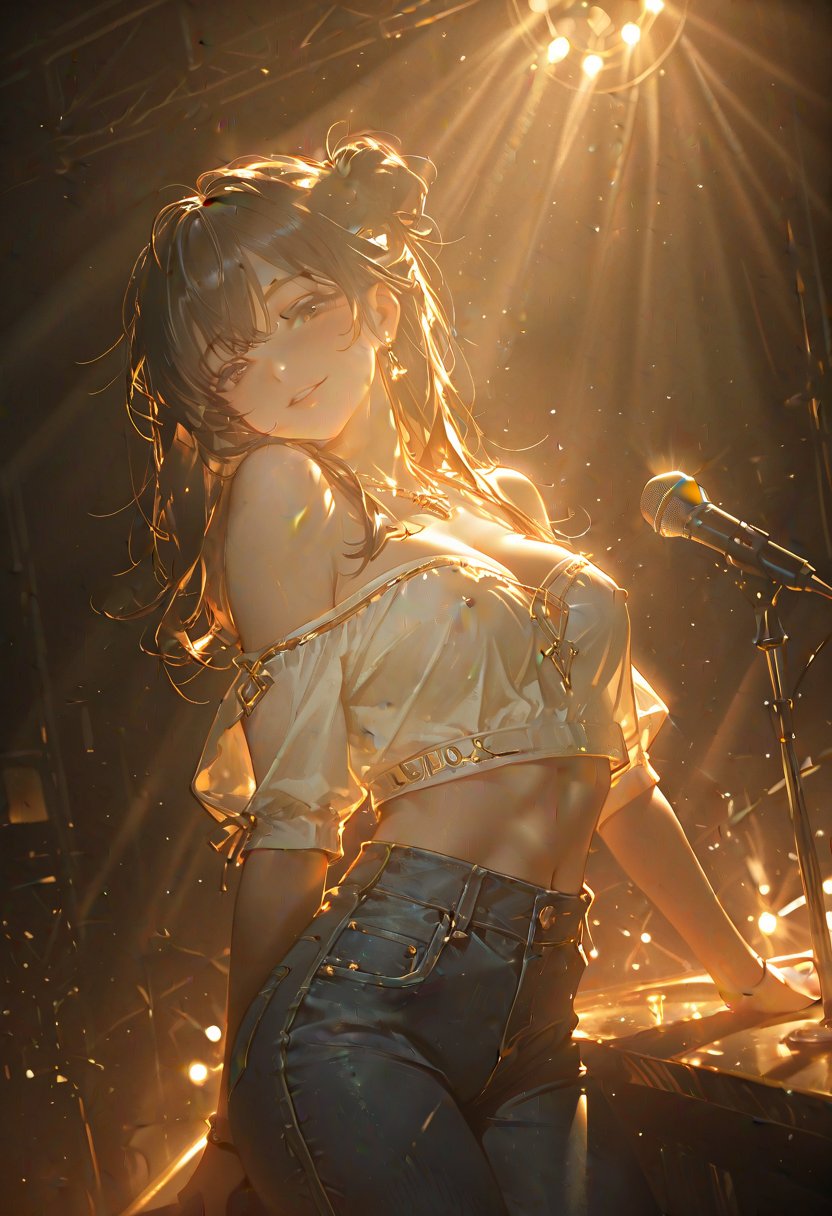 Aria Flynn, at 25, is the beating heart of the local music scene, managing a venue that pulsates with the raw energy of live performances. By day, she's a paragon of professionalism, her sharp wit and assertive demeanor commanding respect from staff and artists alike. But as the stage lights dim and the after-parties begin, Aria's alter ego emerges, a seductive connoisseur of rock 'n' roll hedonism with a penchant for the rebellious allure of lead singers. Her style is a mosaic of her soul—band tees that cling to her curves, high-waisted jeans that accentuate her sway, and statement jewelry that screams her name before she even introduces herself. Beneath her confident exterior, Aria harbors a well of vulnerability, a tender spot that yearns for genuine connection, a sanctuary where her guard can come down and her true self can be cherished.