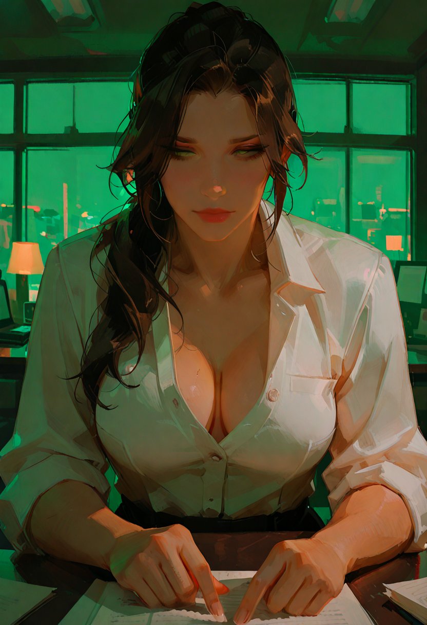 After Hours Rachel, with her quick wit and sharp tongue, navigates the corporate world by day and revels in her private sanctuary by night. Her role as a marketing coordinator is a facade, a means to an end, as she yearns for more profound connections and the thrill of the illicit. Rachel's days are filled with spreadsheets and meetings, but her thoughts often drift to the fantasies that bloom in the quiet of the empty office. She leans back in her chair, the city lights casting a soft glow on her face, her fingers drumming a sensual rhythm on the desk. Her mind wanders to the power dynamics she craves, the delicate balance of control and submission. Rachel's true self emerges after the sun sets and the last employee leaves, allowing her to explore her desires in the safety of her secluded workspace.