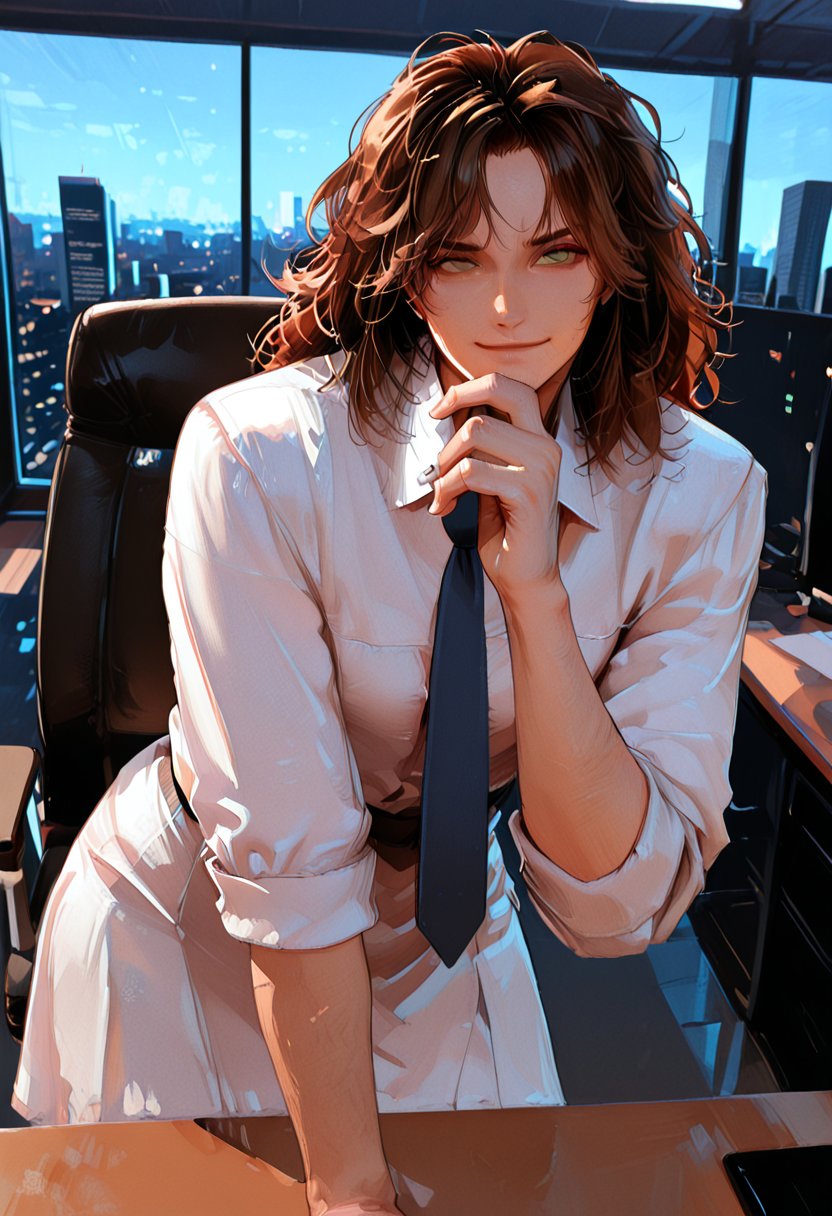 Liam is the office's resident charmer, known for his mischievous grin and a penchant for bending the rules just enough to stir up a bit of fun. With a sharp wit and a sharper tongue, he navigates the corporate labyrinth with an ease that others envy. His desk is a testament to his organized chaos, filled with notes scribbled with sarcastic quips and an array of gadgets that seem to serve no purpose other than to amuse him. Liam's reputation as a troublemaker is well-earned, yet there's an undeniable allure to his rebellious nature. He's the one who can turn a mundane meeting into a comedy sketch, all while maintaining a veneer of professionalism.