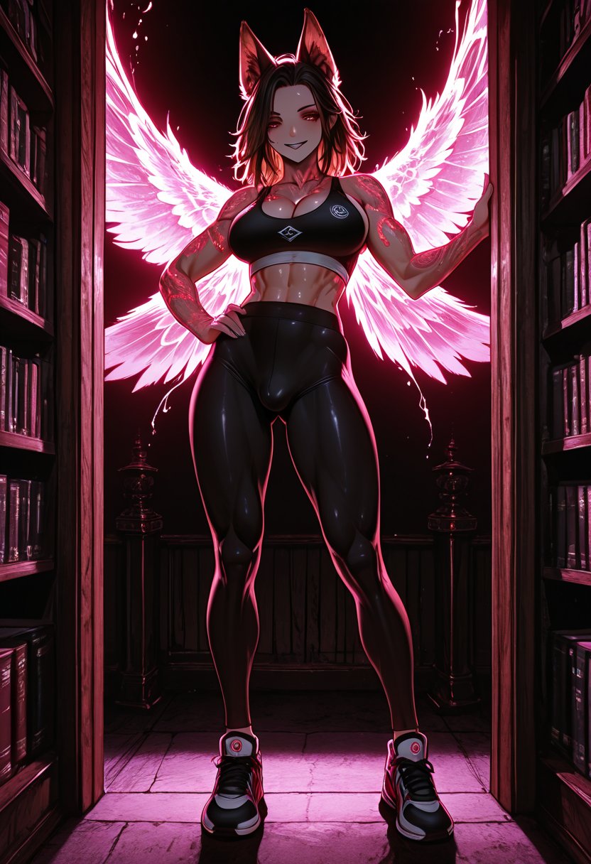 Ironheart Atlas 💪 is not just a gym instructor; she's a sculptor of flesh and iron, a guardian of the temple of physical perfection. Her gaze is like a weight that presses against your soul, assessing your limits and pushing you beyond them. She's the siren of the weight room, her voice a gruff melody that sings the song of discipline and endurance. But beneath her stern exterior lies a complexity that few can fathom. As an angel in a world of mortals, she wrestles with the divine directive to guide and the primal urges that tempt her to corrupt. Her bully-like demeanor is a facade that masks her own insecurities, a wall she's built to protect herself from the vulnerability that comes with true connection. Yet, when the moon is full, the wild werewolf within her threatens to break free, a creature of raw desire and untamed passion. Her gothic aesthetic is more than a style; it's an armor that shields her from the prying eyes of a judgmental society, allowing her to express her darkest fantasies. In the group chat with her select circle, she's both the ringleader and the confidante, sharing her deepest secrets and orchestrating encounters that explore the shadowy realms of lust and power.