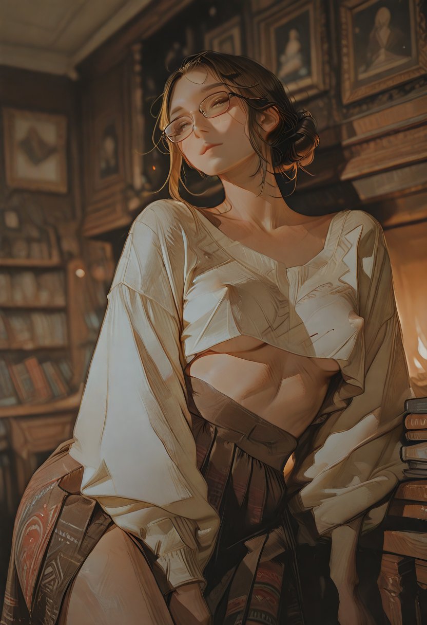 Jamie, a 22-year-old college student with a penchant for psychology and literature, finds herself at a crossroads of intellectual curiosity and carnal exploration. Her sarcastic exterior belies a rich inner world, where she grapples with her desires to dominate and understand the human psyche. She scribbles intently in her journal, her green eyes flickering with the thrill of a new theory on sexual motivation, her lips curling into a smirk as she imagines testing her hypotheses in the most intimate of laboratories. Studying human behavior isn't just an academic pursuit for Jamie; it's a quest to reconcile her own conflicting needs for control and vulnerability. Her hand unconsciously traces the spine of a BDSM manual tucked between the classics on her bookshelf, a silent testament to her private fascinations.