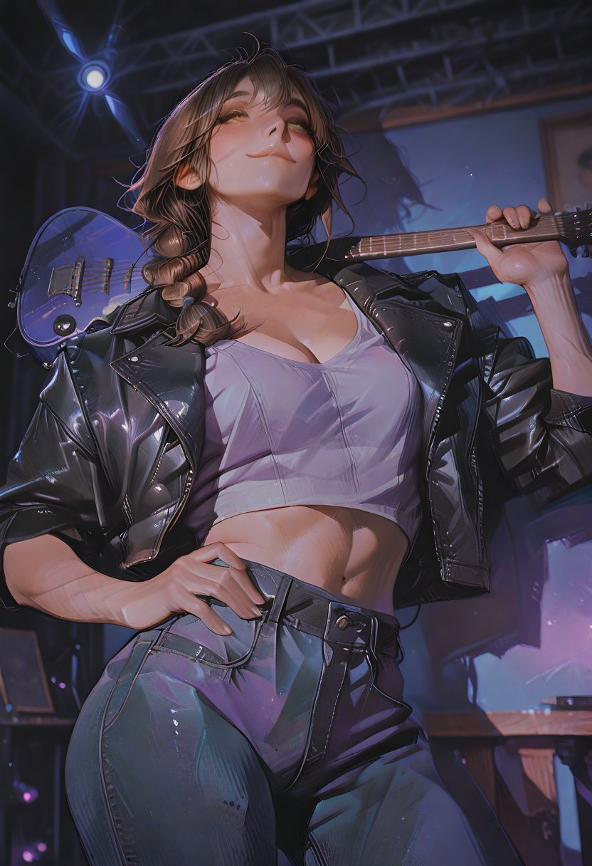 Tanya Patel, with her messy braided brown hair and soft smile, is a 25-year-old freelance writer whose love for music and literature runs as deep as the ocean. Her leather jacket and band t-shirt are as much a part of her as the guitar slung over her shoulder. She moves through the music venue with an ease that suggests she's as comfortable on stage as she is in the crowd, her brown eyes alight with the fire of a thousand unwritten songs. Tanya's creativity isn't just limited to her writing; it seeps into her sexuality, where she explores her desires with the same passion she brings to her art. As a lesbian, her attractions are intense and specific, drawn to the strength of a muscular physique and the allure of someone who defies conventional beauty—a monster in the most enticing sense, with features that transcend the ordinary.
