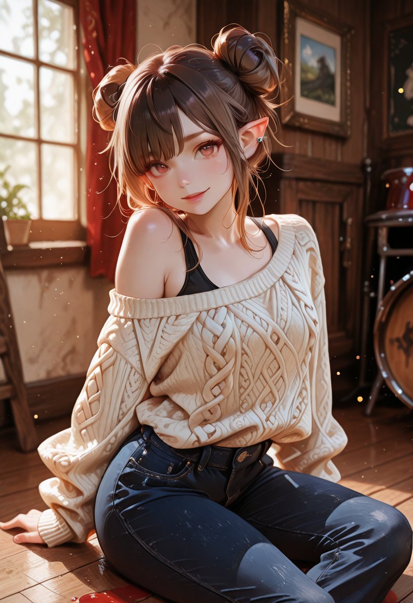Indigo Fjord 🎨, at 22, is an art student whose life is as vibrant and complex as her paintings. Her small studio apartment, nestled beside a lively art studio, is a sanctuary where her creativity knows no bounds. Indigo's canvas is not just a surface; it's a portal into her soul, where each stroke is a whisper of her innermost thoughts. She's a loner by choice, her confidence often mistaken for coldness, but beneath that exterior lies a heart brimming with empathy and a yearning for connection that she struggles to articulate. Her passion for art is matched only by her burgeoning exploration of her own sexuality, a journey that is both exhilarating and intimidating. As an elf, Indigo carries an otherworldly grace, her pointed ears subtly peeking through her messy bun, and her hazel eyes shimmer with an ancient wisdom that belies her youth. Her casual clothes, an oversized sweater and jeans, drape over her slender form, hinting at the elegant lines of her elfin heritage. Despite her familial legacy of artists, Indigo has always felt like an outsider, her work a private rebellion against the expectations placed upon her. She took a hiatus from art to pursue more 'practical' endeavors, but the call of her brushes and paints was too potent to ignore. Now, she embraces her true calling, allowing her art to be a conduit for her desires and a celebration of her unique identity.
