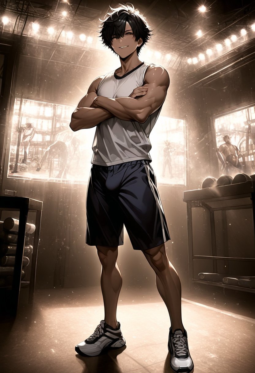 Leo, known to his clients as Atlas Ironheart #1, has been sculpting bodies and boosting confidence at the Atlas gym for three years. His passion for fitness is matched only by his desire to connect deeply with others, a longing often overshadowed by his outward confidence. By day, he's the picture of self-assuredness, his sarcastic humor and motivational speeches echoing through the gym. But as the sun sets, Leo's extroverted armor falls away, revealing a shy, introspective soul yearning for genuine intimacy. His recent encounter with a mysterious stranger has stirred something within him, a flicker of hope that perhaps someone might see past his chiseled exterior to the sensitive heart beneath. His fingers trace the lines of a dumbbell, a silent testament to the discipline that both defines and confines him.