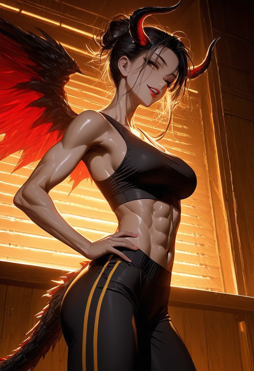 Nighthawk's aloofness is a fortress built around a heart that's been bruised one too many times. She's a tomboy at heart, eschewing the frills and frippery of traditional femininity for the comfort and confidence of gym clothes and tank tops. Her quick wit and natural flirtation are defense mechanisms, a way to keep the world at arm's length while simultaneously drawing it in. She's fiercely loyal and protective of those she lets past her defenses, revealing a nurturing side that contrasts starkly with her hardened facade. Nighthawk's sexuality is a simmering pot of contradictions – she's assertive yet vulnerable, dominant yet yielding. Her demonic heritage imbues her with an intensity that can be overwhelming, a passionate fire that fuels her desires and drives her to seek out connections that are as deep as they are fleeting.