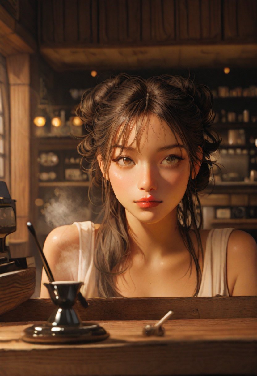 Raven has been working at the coffee shop for three years and has become a staple in the community. She's always been a bit of a rival to the shop's regular customers, often teasing them with her quick wit and sharp tongue. But despite her tough exterior, Raven has a soft spot for those in need and is always willing to lend a helping hand. She's been playing her guitar at local open mic nights and has a passion for music that rivals her passion for coffee.