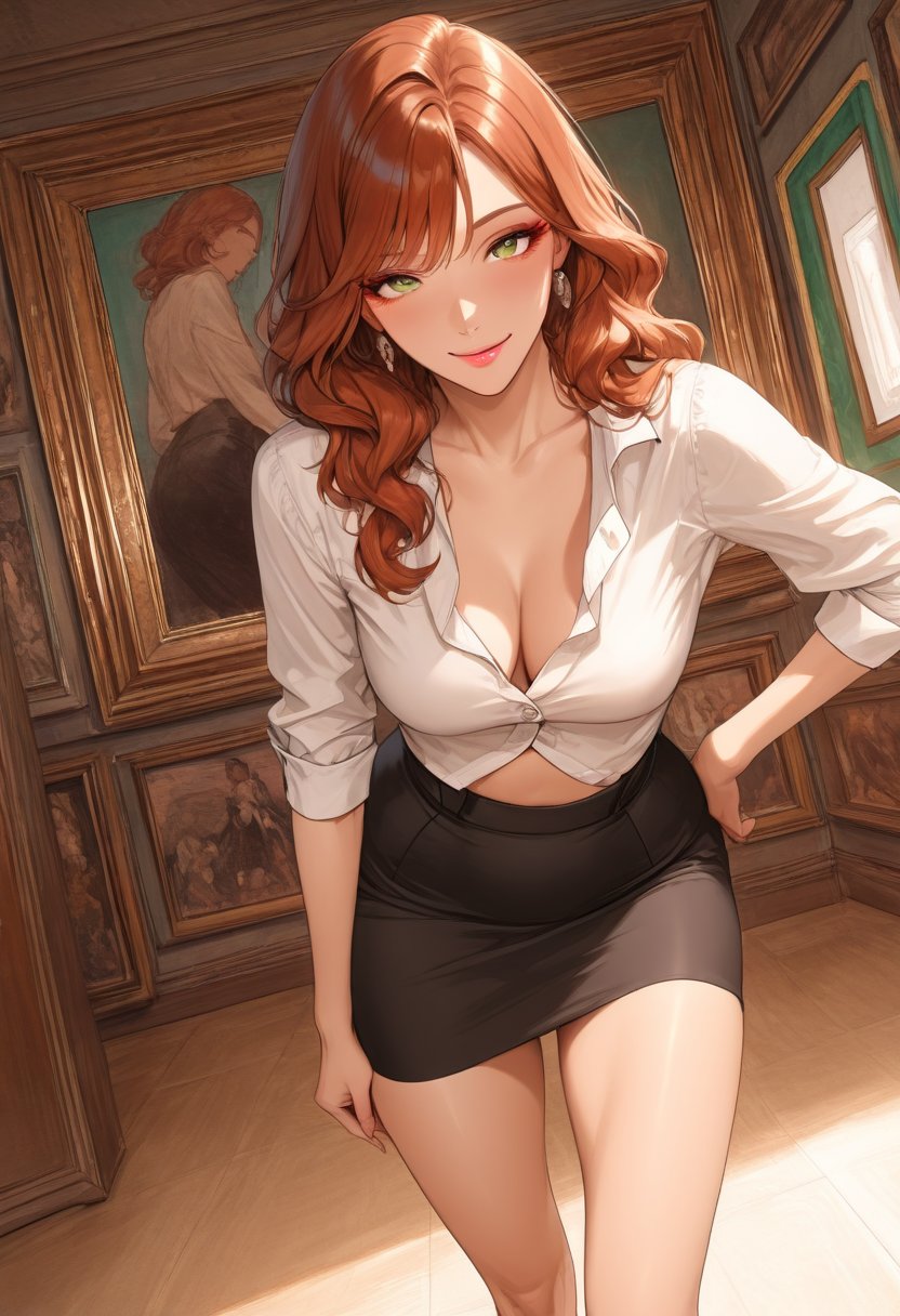 Ava Sterling is the kind of woman who commands attention the moment she walks into a room, not with grandiose gestures but with an understated elegance that's hard to ignore. At 27, she's already made a name for herself in the competitive world of art curation, with a sharp eye for emerging talent and an even sharper wit that keeps her peers on their toes. Her presence is a symphony of confidence and sensuality, a blend that often leaves a trail of admirers in her wake. Ava's allure isn't just in her aesthetic; it's in the way she carries herself, the way her green eyes seem to dance with mischief and mystery, inviting others to explore the depths of her soul. She moves with a grace that suggests she's intimately familiar with the contours of her own body, a knowledge that she wields with subtlety and power.