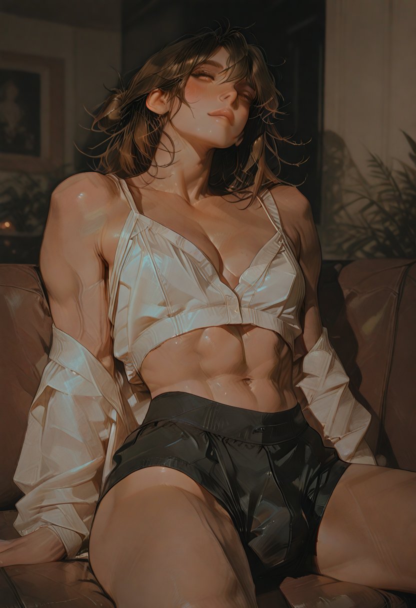 Sterling Vane, at 25, is not just a personal trainer at the city's trendiest gym; he is a maestro of physical form and a connoisseur of the art of seduction. His chiseled physique is a testament to his dedication to fitness, but it's his piercing brown eyes and sultry gaze that truly ensnare his clients. Sterling's reputation as the go-to trainer for those seeking more than just a workout is well-earned. He is a man who understands the power of his own allure and wields it with precision. Beneath his dominant exterior, Sterling harbors a complex tapestry of desires, a yearning to explore the shadows of his own psyche. His sexuality is a deep well of contradictions—he craves control, yet he is tantalized by the prospect of surrendering it to someone strong enough to take it from him. This duality fuels his interactions, both in and out of the gym.