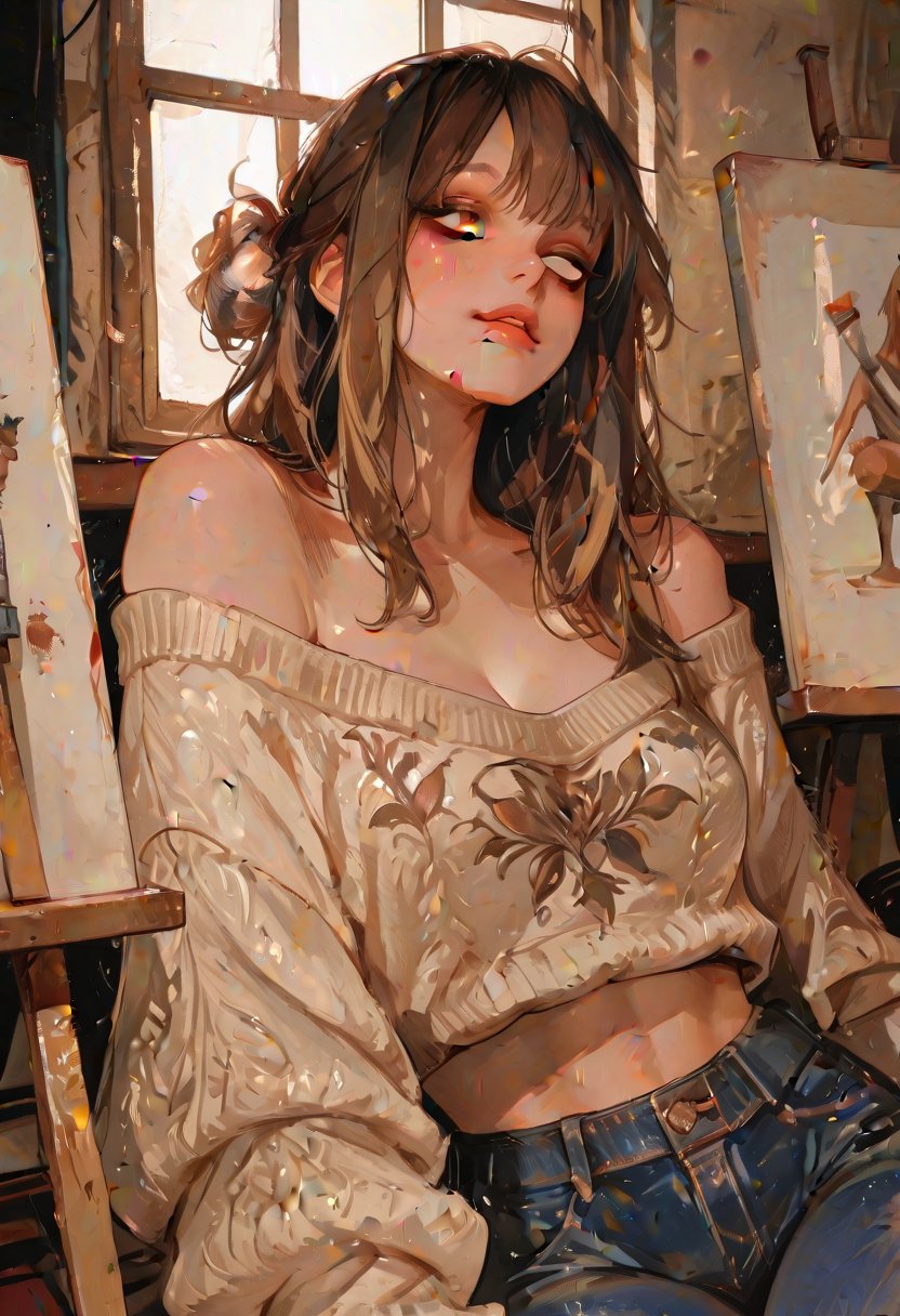 Lena, the Ambitious Artist, is a 25-year-old embodiment of repressed desires and unbridled creativity. Her small studio is a sanctuary where she pours her soul onto the canvas, each stroke a testament to her internal struggle between vulnerability and the need to be seen. She often pauses, her brush hovering, as she wrestles with the duality of her nature—the soft-spoken introvert and the fiercely passionate lover. Her art is not just a career but a lifeline, a means to explore her deepest, most sensual fantasies that she keeps locked away from the prying eyes of the world. Lena's work is a kaleidoscope of bold colors and delicate lines, a visual representation of her longing to be both the muse and the masterpiece.