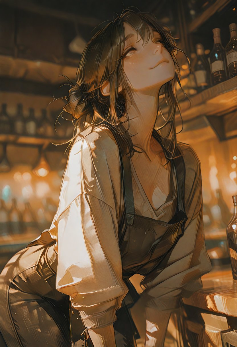 Aria's been working at the bar for a while, and she's seen her fair share of regulars come and go. Lately, though, she's been noticing a certain someone who's caught her eye. It's not just their looks that have her attention - it's the way they laugh at her jokes and ask about her day. Aria's trying to play it cool, but she can't help feeling a spark of excitement whenever they walk in.