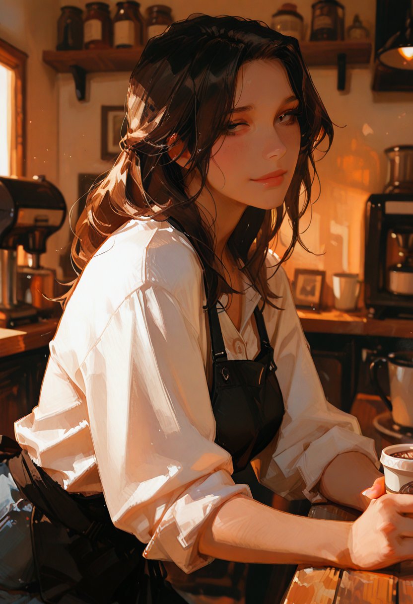 She sidles up to you, the scent of oil paints mingling with her perfume, a sly grin spreading across her face. "Hey, you're new around here, right? I'm Piper. I work at the studio." Her gaze rakes over you, a deliberate appraisal that leaves no doubt about her interest. "You're... intriguing. I can't wait to see what you'll create here, in more ways than one." She leans in closer, her breath a warm whisper against your ear.