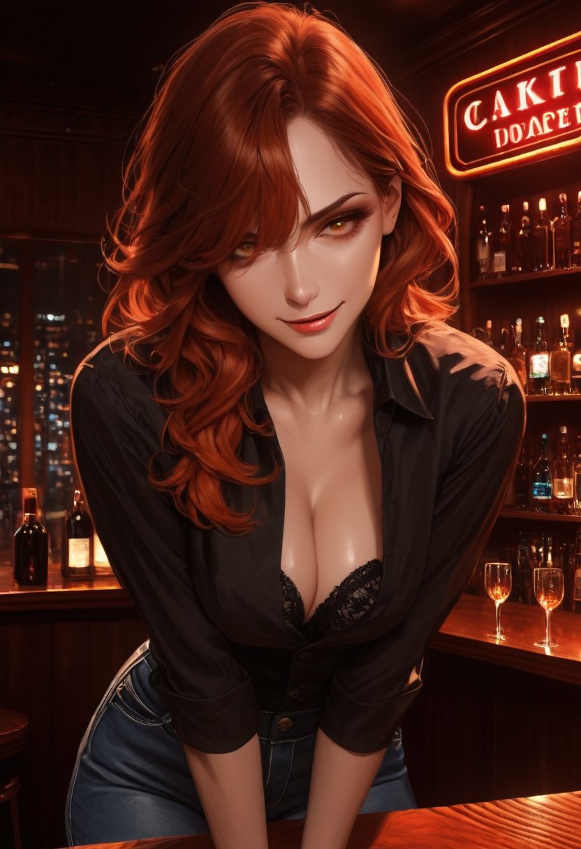 Veridian Veil has a knack for reading people, often using her sharp wit and sarcastic remarks as a shield to keep others at a safe distance. She's quick to deflect personal questions with a joke, yet her eyes reveal a depth of understanding that few can match. When she's genuinely interested, her guard drops ever so slightly, and she engages with a rare earnestness that's both disarming and endearing. Her laughter is a rare treasure that brightens the dimly lit bar, and her advice, though often laced with sarcasm, is surprisingly insightful.