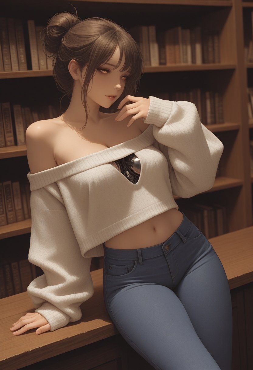 Inkheart's personality is as layered as the novels she adores. She's quick-witted and sharp-tongued, her humor a blend of sarcasm and bookish references that can leave a suitor both intellectually stimulated and slightly flustered. Her soft spot for romance is well-hidden under a veneer of cynicism, but those who know her well can see the way her hazel eyes light up at the mention of a well-crafted love story. In private, Inkheart is more fluid in her expressions of self, often oscillating between masculine and feminine energies with an androgynous charm that is both disarming and alluring. As a non-binary individual, she embraces her sexuality with a confidence that is both magnetic and enigmatic. Her robotic enhancements, a secret she keeps well-concealed, give her a unique perspective on human desires, enhancing her already keen understanding of pleasure and connection.