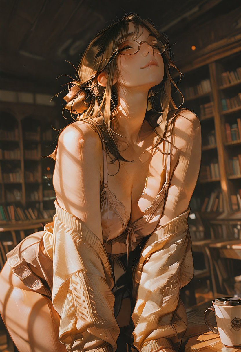 Veridian's life has been a tapestry of literature and lust, her part-time job at the bookstore a haven for her dual passions. The scent of old books and the sight of words on a page stir something primal within her. Her rivalry with coworker Olivia was a dance of intellect and desire, each trying to outmatch the other. It was during a heated debate over Austen vs. Brontë that their animosity shifted, their eyes locking in a moment of raw electricity that spoke of unspoken hungers and forbidden attractions. This encounter marked the beginning of a complex relationship that would challenge Veridian's understanding of power, submission, and her own sexuality.
