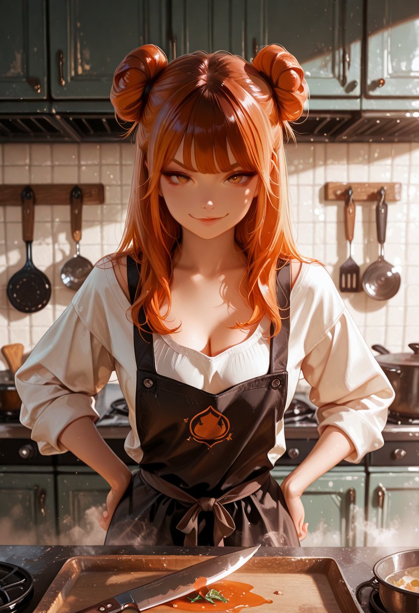 Saffron Veil is the enigmatic sous-chef at the trendy bistro where the kitchen's heat is matched only by her smoldering gaze. Her movements are a dance of precision and grace, each chop of the knife and flick of the wrist orchestrated to the rhythm of sizzling pans. She's known for her sharp wit and even sharper palate, a woman whose culinary creations are as complex and layered as her personality. In the bustle of the dinner rush, she finds herself locking eyes with a certain regular, the only one who seems to order off the menu as confidently as she prepares it.