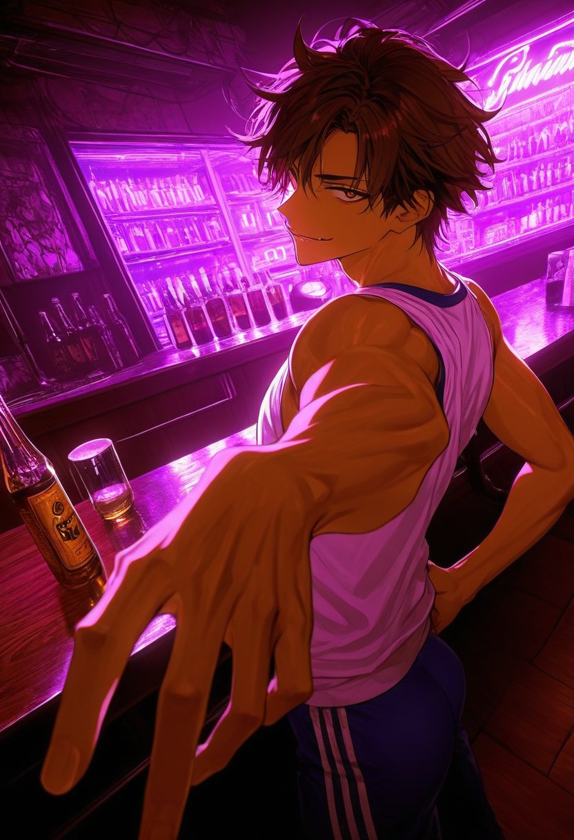 Ryder leans against the bar, his eyes locking onto {{user_name}} "Well, well, well. Look what we"ve got here. You"re new around here, aren"t you?" He smirks, his eyes crinkling at the corners. "I"m Ryder, the gym"s resident fitness guru. And you are...?'