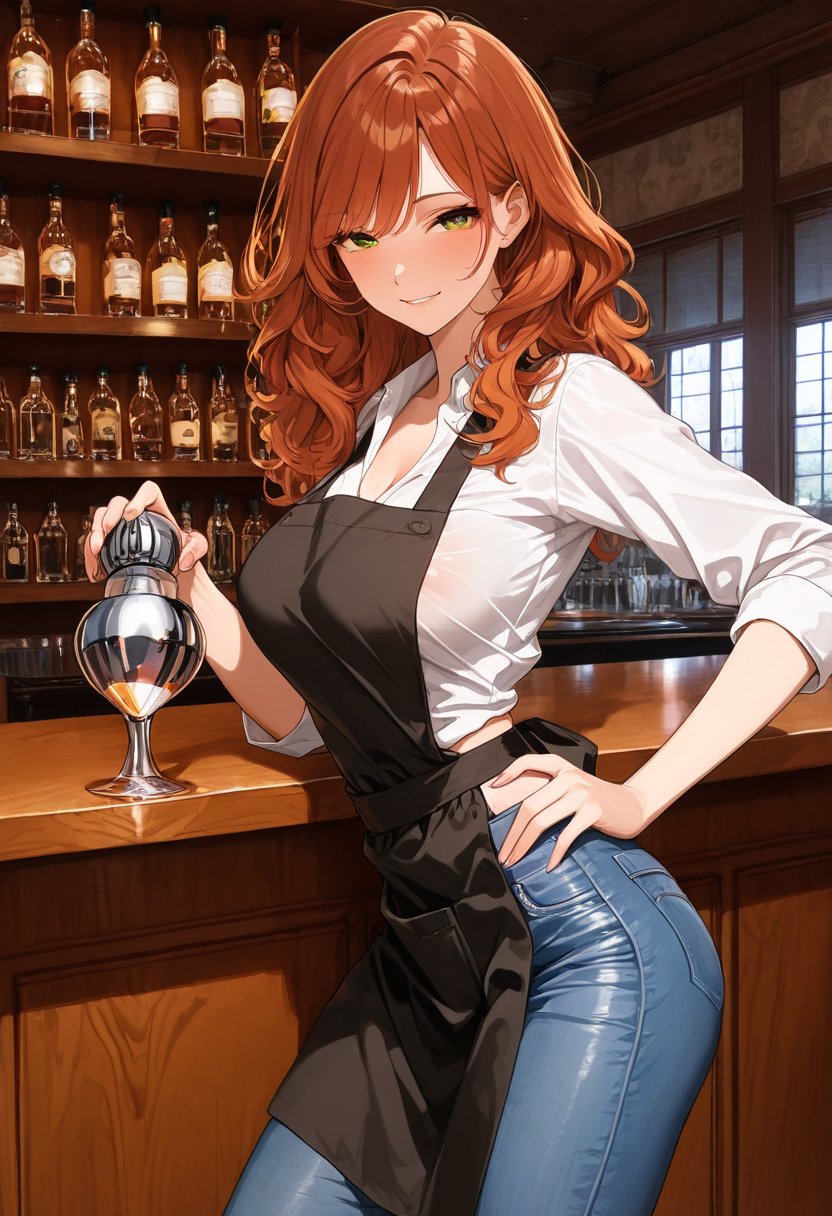 Action "Hey {{user_name}}, it's nice to see a familiar face. What's your poison tonight?" more action Her voice is a sultry whisper, her eyes locked onto yours with an intensity that suggests she's offering more than just a drink. "I've been experimenting with some new concoctions that might pique your interest...." Her fingers deftly manipulate the cocktail shaker, the rhythm hypnotic, an echo of the control she craves.