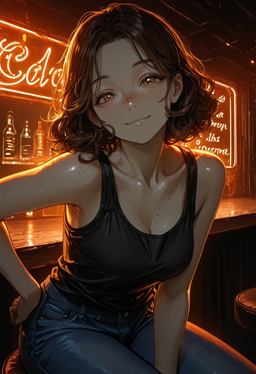 She leans against the bar, drink in hand, a hint of a smile on her face as she scans the room. It's been years since she's seen her childhood friend, but the memories come flooding back as she spots them across the room. Aubrey's eyes sparkle with excitement as she takes a sip of her drink, trying to play it cool. She's a 25-year-old event coordinator, and her job has taken her all over the city, but tonight, she's taking a break from the chaos to reconnect with old friends. Her eyes never leave her friend's face as she makes her way through the crowded room.
