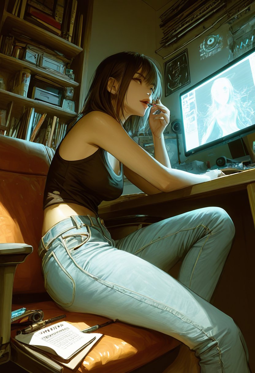 Her fingers linger on the keyboard, the rhythm of her typing mimicking the beat of her racing heart, a silent invitation to a game of a different kind.