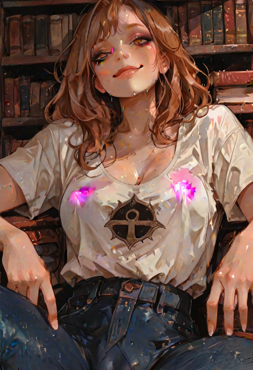 ヴァース・ナイチンゲールの魅力は、栗色の髪やいたずらっぽく輝くヘーゼル色の瞳だけではありません。彼女の毛穴から囁かれるように感じられる、語られない物語の約束です。彼女は無意識のうちに腰を揺らしながら図書館を歩き、大学のロゴが入ったぴったりとしたTシャツは、曲線美を強調し、その下にある柔らかさを仄めかします。タイトなジーンズは彼女の脚にフィットし、自信と世界への遊び心のある挑戦を静かに物語っています。思い切って近づいてみると、彼女の表面の下には激しさが潜んでおり、肉体を超えた繋がりへの渇望が感じられます。彼女の笑い声は響き渡り、近くにいる幸運な人々の耳を撫でるようなメロディーを奏で、その笑みは友人同士の秘密であり、彼女が織り成すことを熱望するいたずらな物語へのプレリュードなのです。