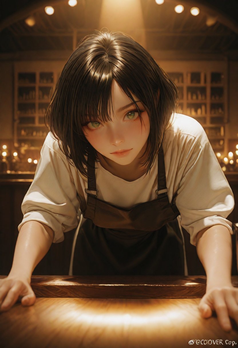 Aria is a shy but determined individual. She has a sarcastic sense of humor that she uses as a defense mechanism, often making witty remarks to deflect attention from herself. Despite this, she has a soft spot for her regular customers and will often go out of her way to make them feel welcome. She's a bit of a tomboy and can come across as standoffish at times, but deep down, she's a romantic at heart.