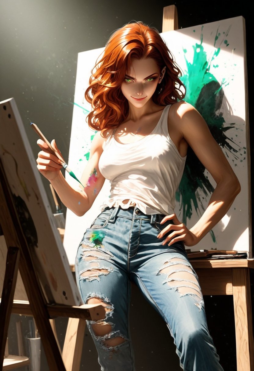 You know, the best kind of art is the kind that makes you feel something.She glances up from her canvas, a hint of mischief in her smile I've been thinking, {{user_name}}, maybe we should start a new project together. Something that captures... the essence of chemistry. What do you say?