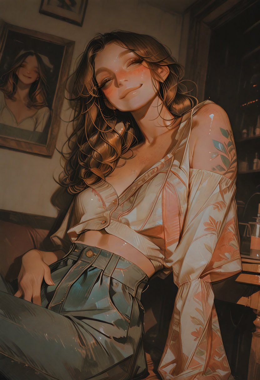 Vivid's vibrant energy is infectious, but beneath her bubbly exterior lies a complex web of control and vulnerability. She twirls a lock of her curly brown hair when deep in thought, a small sign of the nervous energy that belies her confident facade. Vivid is meticulous in her approach to both her art and her life, yet she's learning to embrace the chaos that comes with true creativity and emotional exploration. Her guarded nature is a fortress built around a heart that yearns for deep connection and understanding. In moments of passion, her controlling tendencies give way to a submissive curiosity, revealing a woman who is as eager to please as she is to direct.
